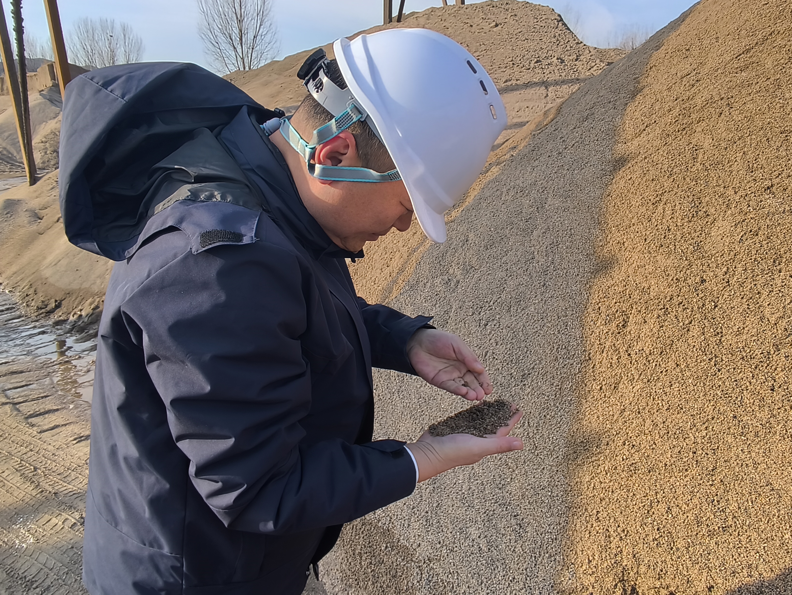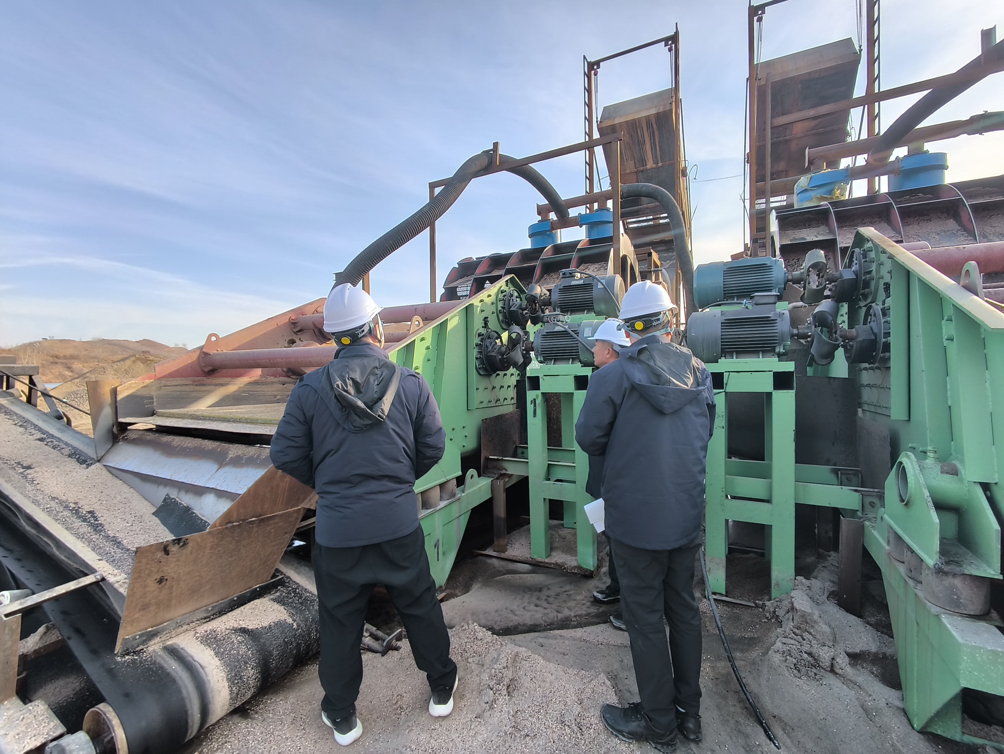 名元科技与生产方相关负责人重点对采砂设备运行状态、安全防护设施配备、运输道路通行条件及砂料生产质量等进行全面排查,针对发现的隐患当场提出整改要求,明确整改时限与责任人员。同时,与生产方深入沟通,细化元旦期间生产计划,敲定人员轮班值守方案,确保生产、安全 “两手抓、两不误”。