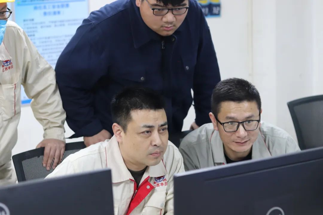 江西丰日生产中心项目攻坚团队成员查看设备数据